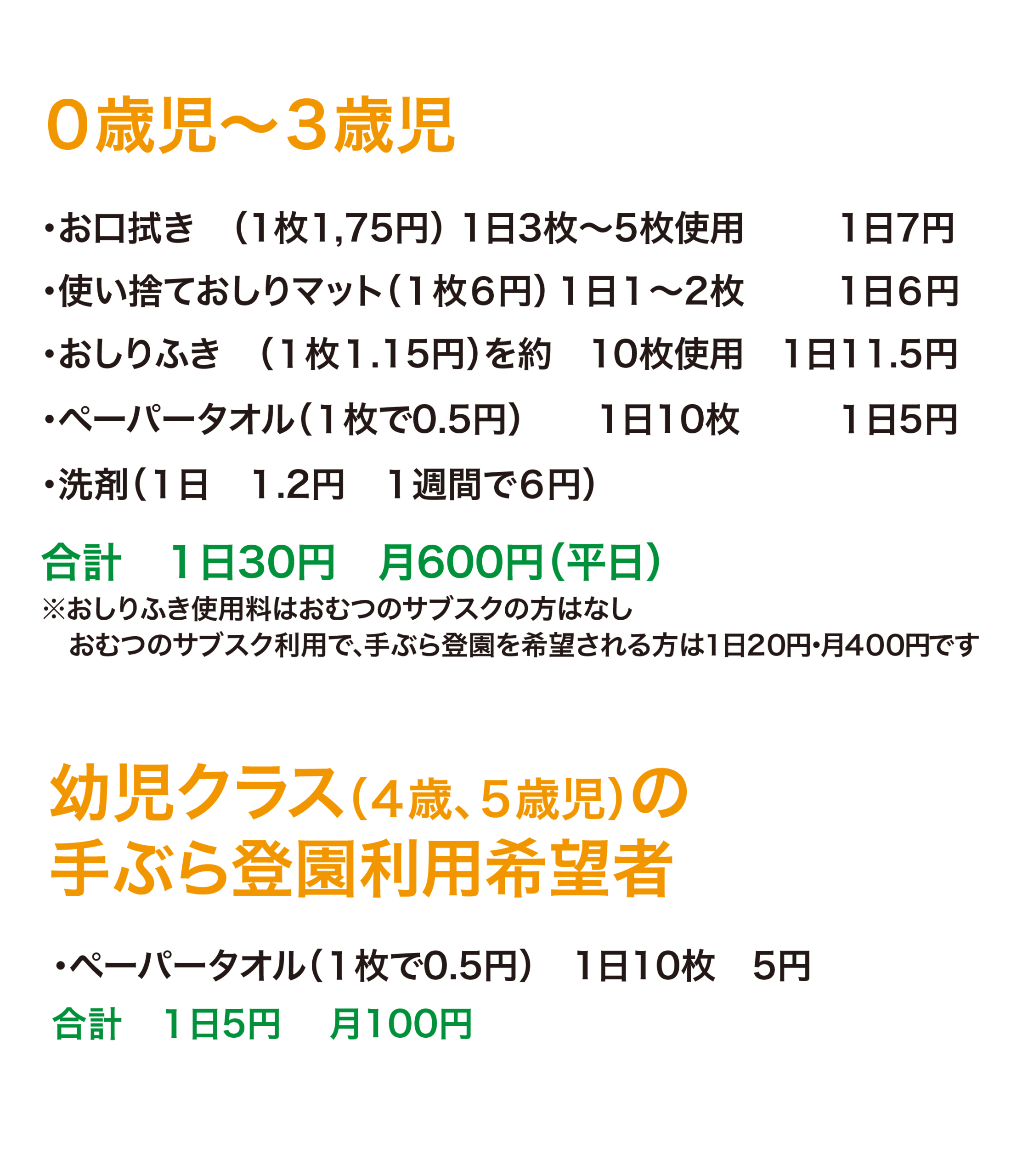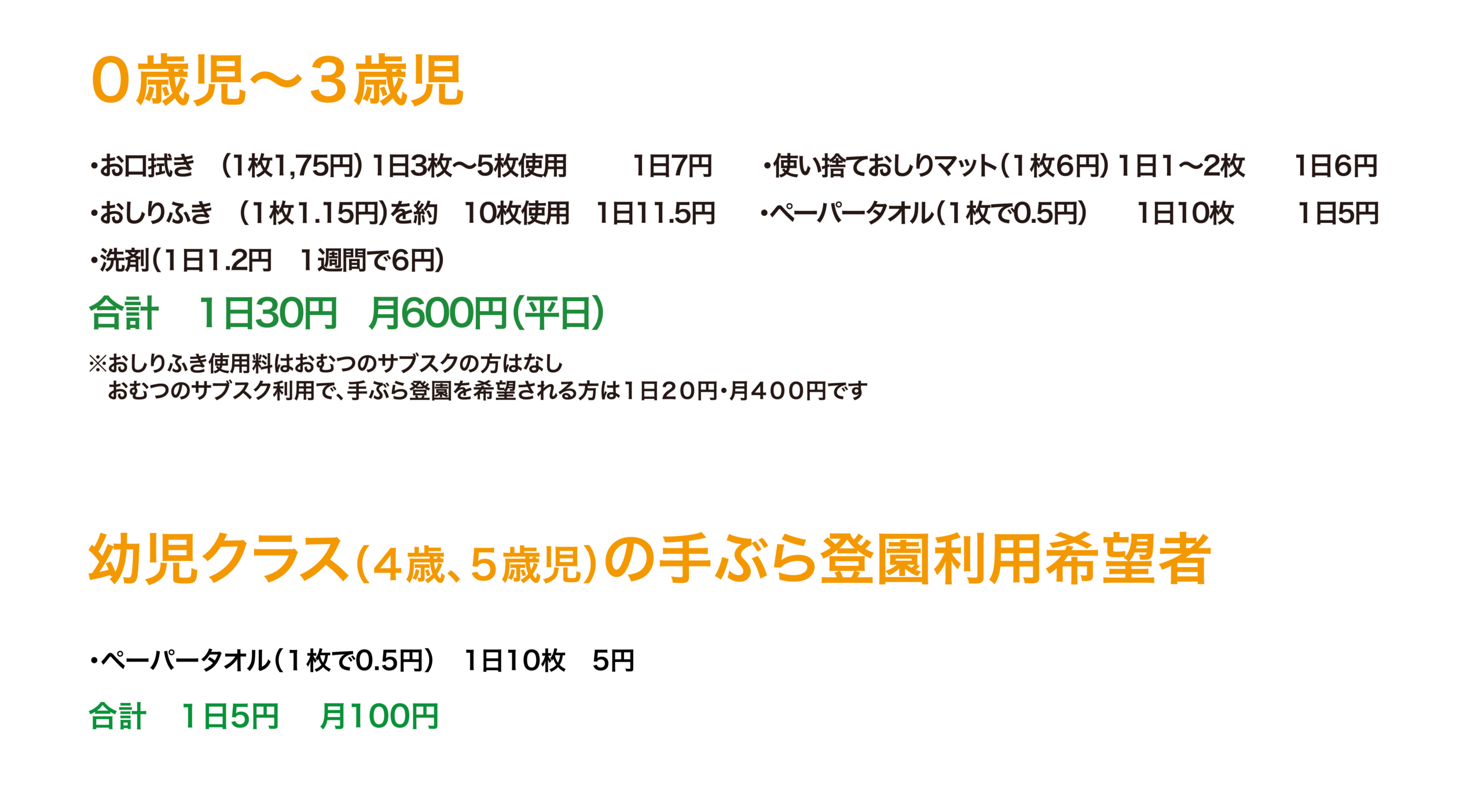 ☆手ぶら登園月費用(利用希望者)